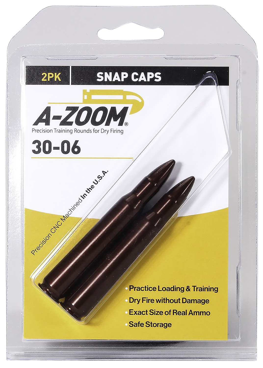 A-Zoom Rifle precision rifle snap caps are a perfect tool for adjusting and tuning your trigger pull, dry firing and smooth bolt cycling practice. CNC-machined from solid aluminum to precise cartridge dimensions, then hard-anodized for smooth functioning and long life. Each round has A-Zoom’s durable “Dead Cap” proven to withstand over 3,000 dry fires while protecting the firing pin.