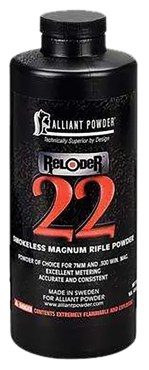 Alliant Reloder 22 is a top-performing powder for big game loads provides excellent metering and is the powder of choice for .270, 7mm magnum and .300 Win Mag. Excellent metering, accurate and consistent in most magnum rifles.