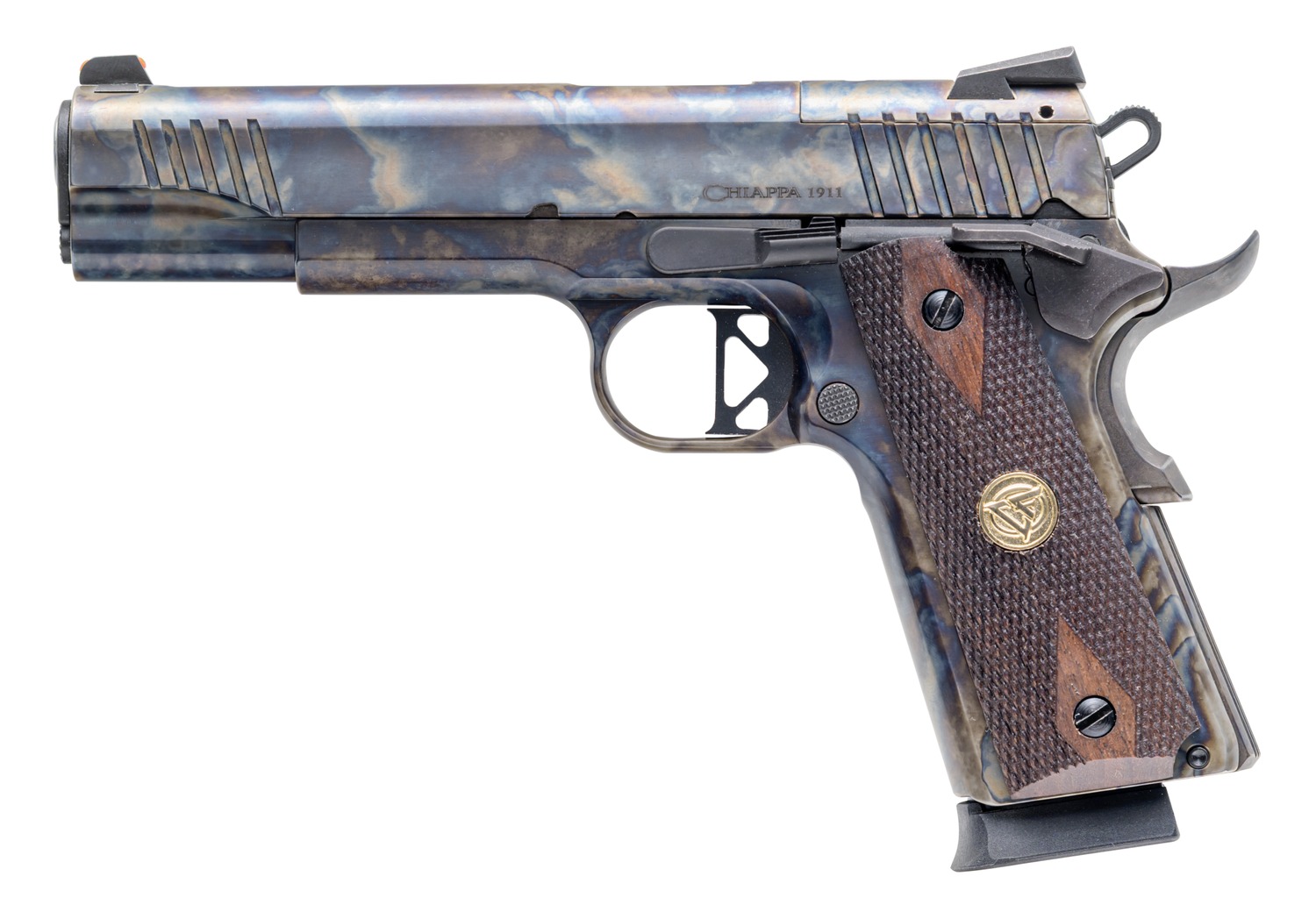 Chiappa Firearms 440235 1911 Superior Full Size Frame 45 ACP 8+1 5″ Color Case Hardened Optic Ready/Serrated Slide & Frame, Walnut Grip, RMR/RMSc Footprint