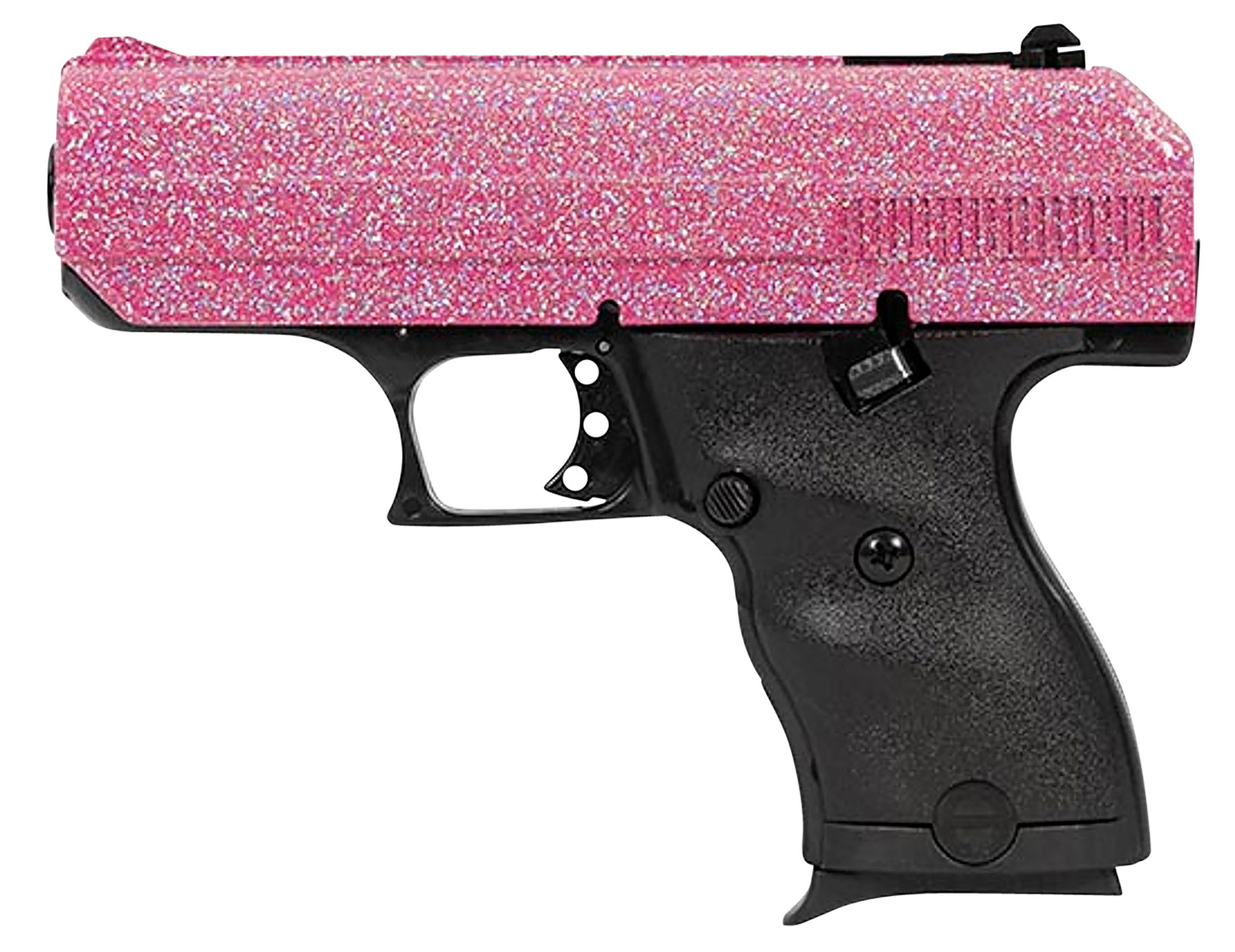 Hi-Point 916PISP C9 9mm Luger 8+1 3.50″ Black Steel Barrel, Hydro-Dipped Pink Sparkle Serrated Slide, Black Polymer Frame, Black Polymer Grips