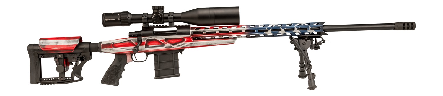 Howa HCRA25CRUSAMDT 1500 w/Optic 25 Creedmoor 10+1 24″ Threaded Barrel, American Flag Cerakote Steel Drilled & Tapped Receiver, Buffalo River Bipod, Luth-AR MBA-4 Black Polymer Stock, MDT Grip, Nikko