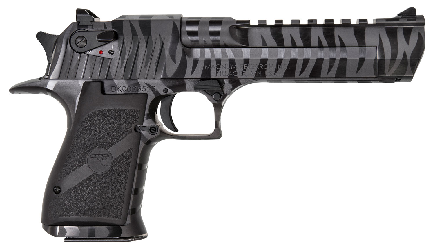 Magnum Research DE50BTS Desert Eagle Mark XIX 50 AE 6″ 7+1 Black Carbon Steel with Tiger Stripes Frame & Slide Black Polymer Grip
