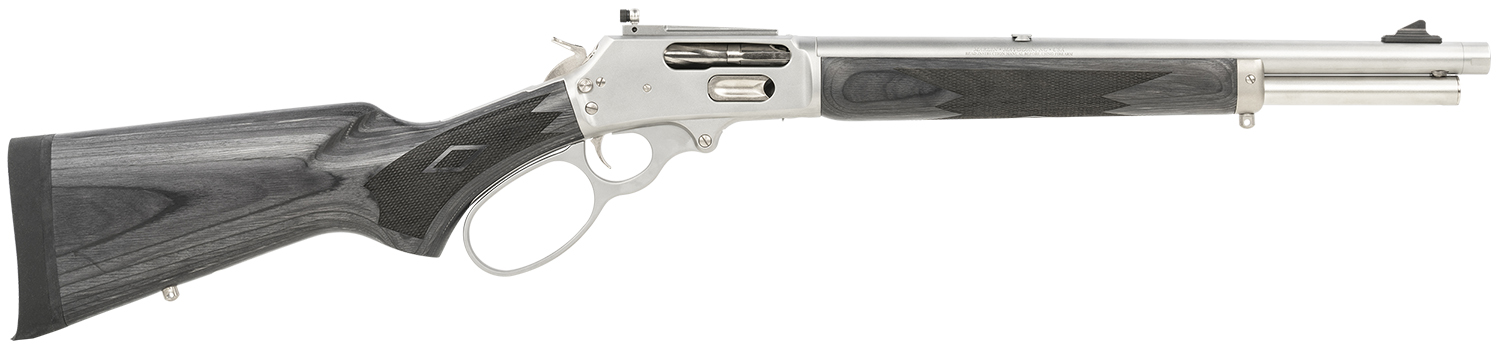 Marlin 70450 1895 Trapper Full Size 45-70 Gov 5+1 16.10″ Polished Stainless Steel Threaded Barrel, Polished Stainless Stainless Steel Receiver, Fixed Black Laminate Stock