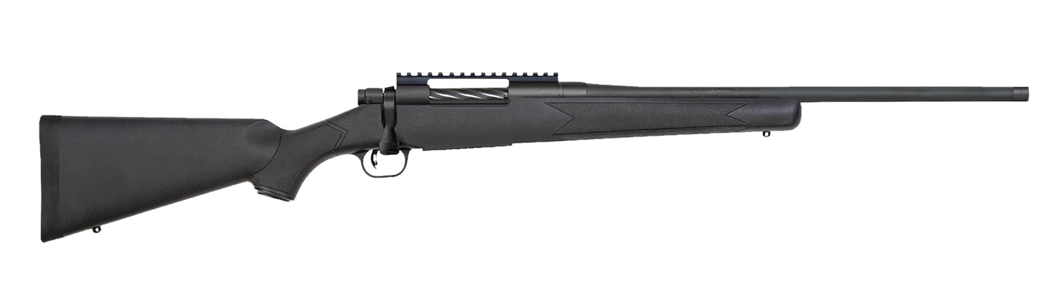 Mossberg 28235 Patriot Carbine 7mm PRC 3+1 20″ Matte Blued Threaded Bull Barrel, Matte Blued Picatinny Rail Receiver, Black Fixed Synthetic Stock