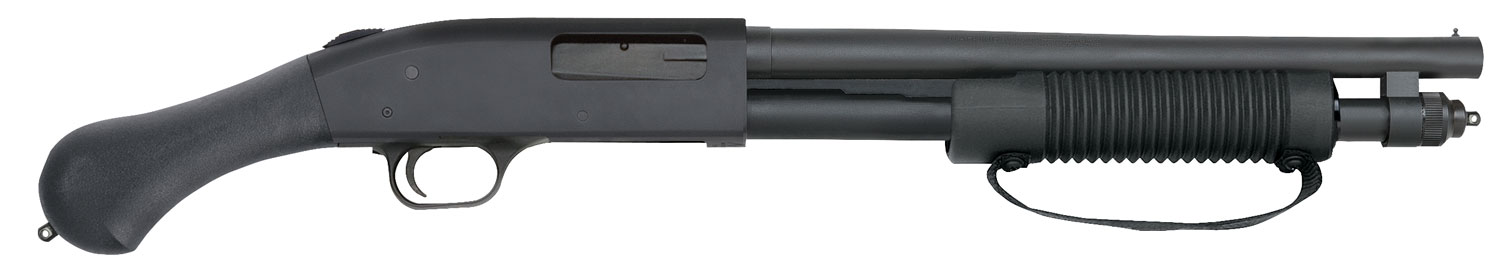The 590 Shockwave includes all the features that have made Mossberg pump-actions the choice for millions worldwide: ambidextrous safety, dual extractors, positive steel-to-steel lockup, twin action bars, and a smooth operating anti-jam elevator. It has a convenient clean-out tube magazine cap, a front bead sight and ‘corn cob’ strapped forend to keep shooter’s lead hand clear of the muzzle. The 590 Shockwave Raptor bird’s head pistol grip is uniquely shaped to minimize felt recoil. Classified as fully-compliant by the BATFE, this model requires no Tax Stamp for transfers.