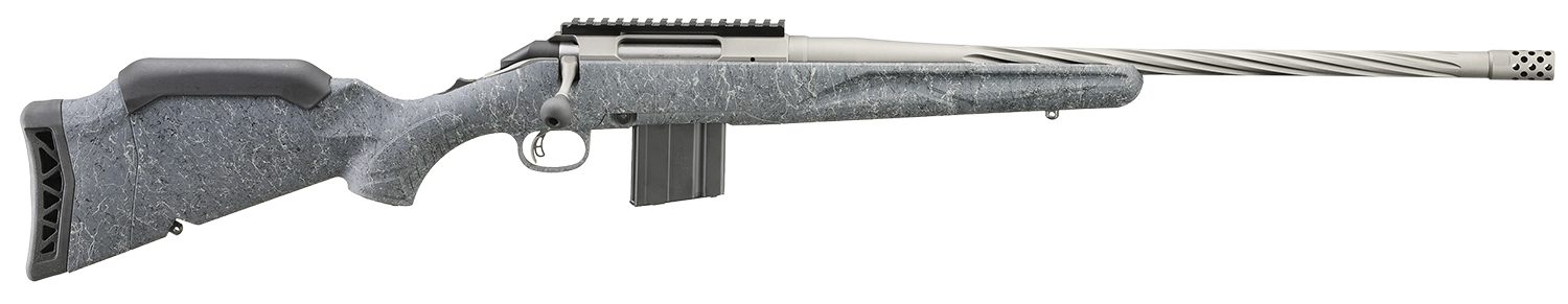 The Ruger American Gen II bolt is CNC machined from stainless steel for smooth operation and the familiar three-lug design with a 70 degree throw provides ample scope clearance. Features a splatter finished stock that provides excellent grip without being too sharp or abrasive; installed spacer allows for length of pull to be adjusted; low comb improves sight alignment when using optics; medium contour, spiral, threaded barrel; factory-installed radial port muzzle brake; 3-position tang safety; Ruger Marksman Adjustable trigger and Picatinny rail. Includes one magazine and steel sling swivel studs.
