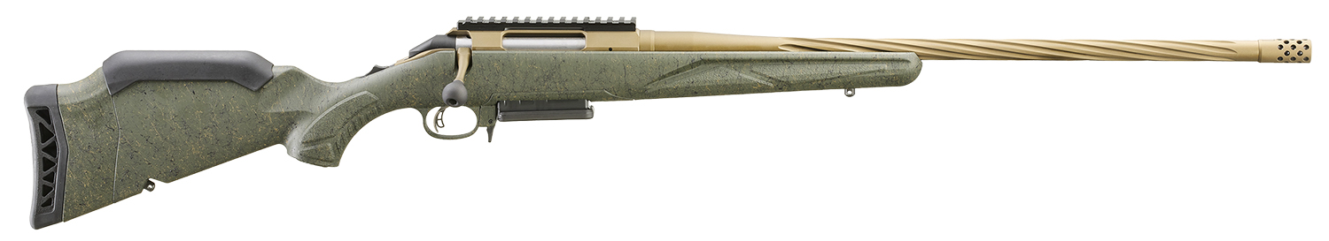 The Ruger American Predator Gen II bolt is CNC machined from stainless steel for smooth operation and the familiar three-lug design with a 70 degree throw provides ample scope clearance. Features a splatter finished stock that provides excellent grip without being too sharp or abrasive; installed spacer allows for length of pull to be adjusted; low comb improves sight alignment when using optics; medium contour, spiral, threaded barrel; factory-installed radial port muzzle brake; 3-position tang safety; Ruger Marksman Adjustable trigger and Picatinny rail. Includes one magazine and steel sling swivel studs.