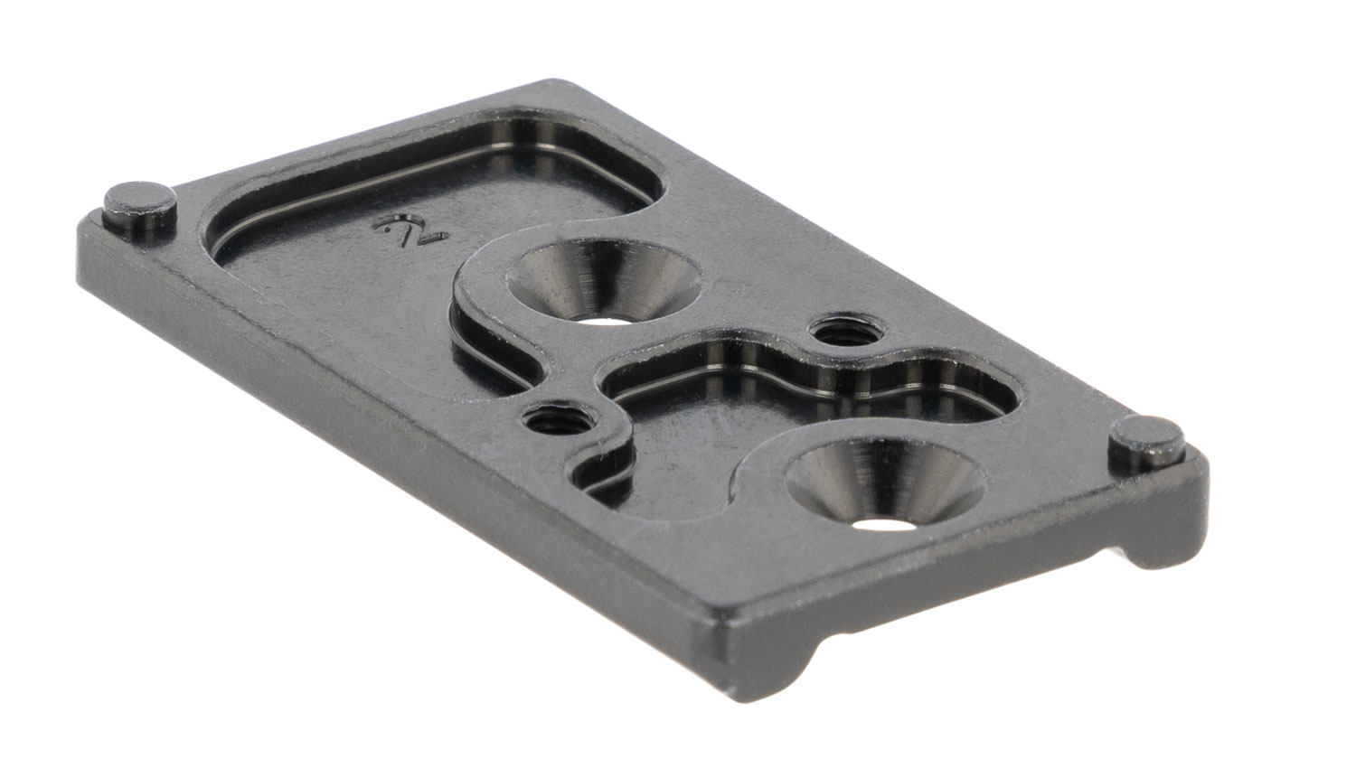 This Optic Adapter Plate supports the use of Docter, Meopta, EOTech, Insight, Noblex red dot sights on the Ruger-57 pistol. Also fits the TruGlo Tru-Tec Micro TG8100B. The plate is precision CNC machined from 6061-T6 aircraft aluminum with a matte black hard-coat finish for strength and durability. Simply place the adapter plate onto slide and secure it using the two #6-32 screws provided. Tighten the screws firmly (30-50 in-lbs.) using a Torx T-15 wrench (not included). Install the optic onto the Adapter Plate by following the sight manufacturer’s mounting specifications (sight not included). The Adapter Plate is 1.700″ long x .975″ wide and weighs .2 ounces. This Genuine Ruger Factory Accessory is made in the USA.