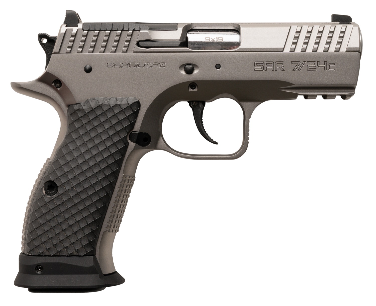 Sarsilmaz SAR7/24C 7/24 Compact 9mm Luger 17+1 Matte Stainless Steel Frame w/Beavertail & Picatinny Rail, Black Polymer Grip