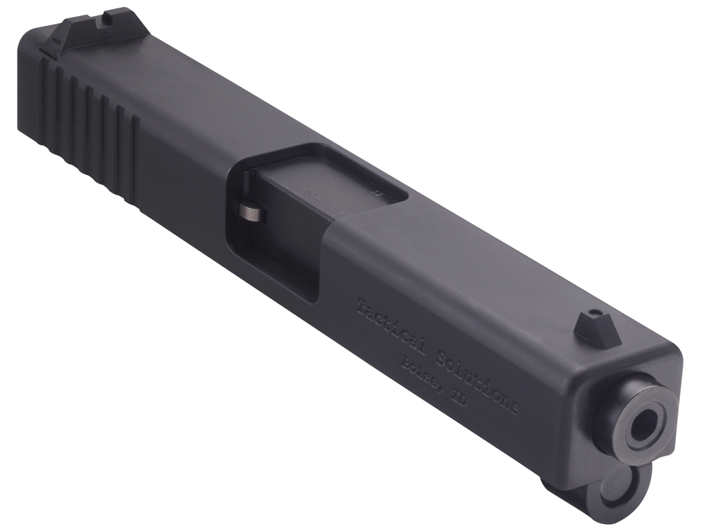 The TSG-22 quickly and easily converts to any generation, even generation 4 of the Glock models 19/23/32/38 into an accurate .22LR pistol. Machined from a solid piece of heat treated 4140 steel, the TSG-22 maintains a similar weight and feel to your factory Glock allowing realistic shooting and training. A nitride surface treatment offers superb resistance to wear and surface friction. The barrel has a 1:16″ twist. It comes with factory Glock sights and includes a 10-round magazine.