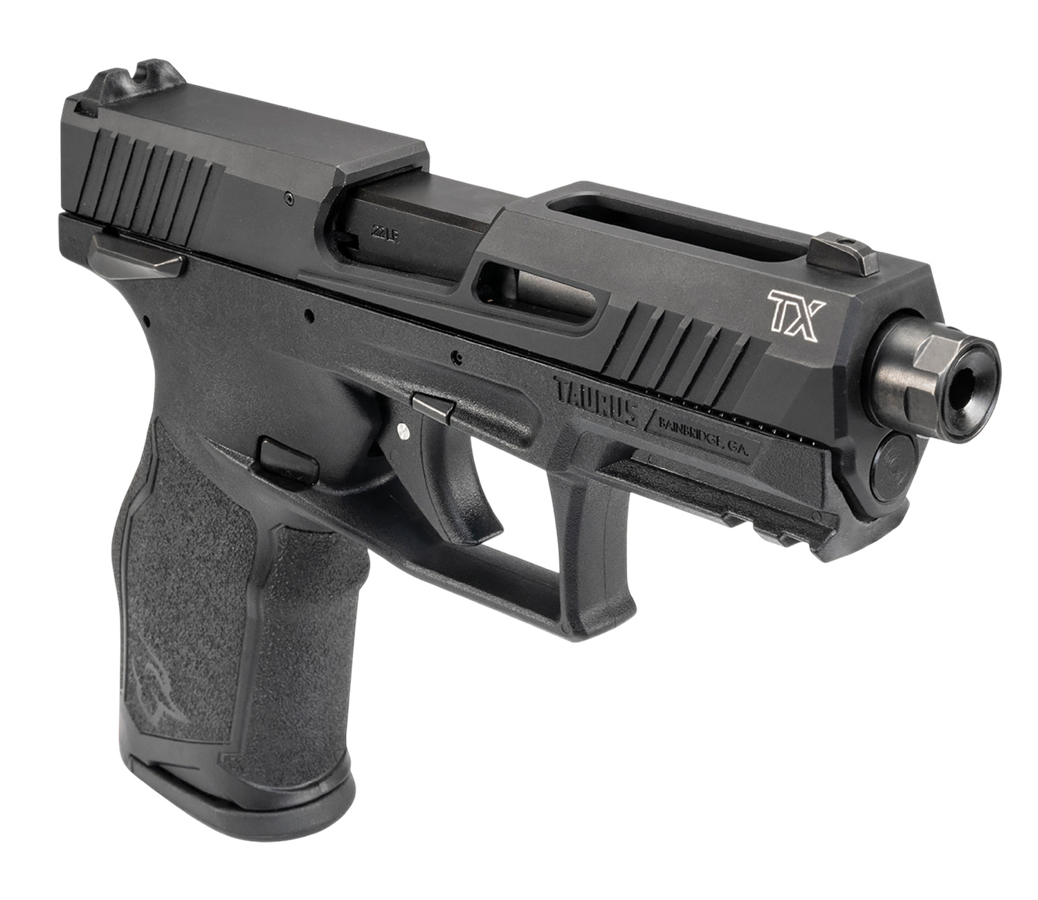 Taurus 1-2TX22341-5X10 TX22 Full Size Frame 22 LR 10+1 4.10″ Black Non-Threaded Barrel, Black Serrated Slide, Black Polymer Frame w/Picatinny Rail, Ergonomic Grip, 5 Mags