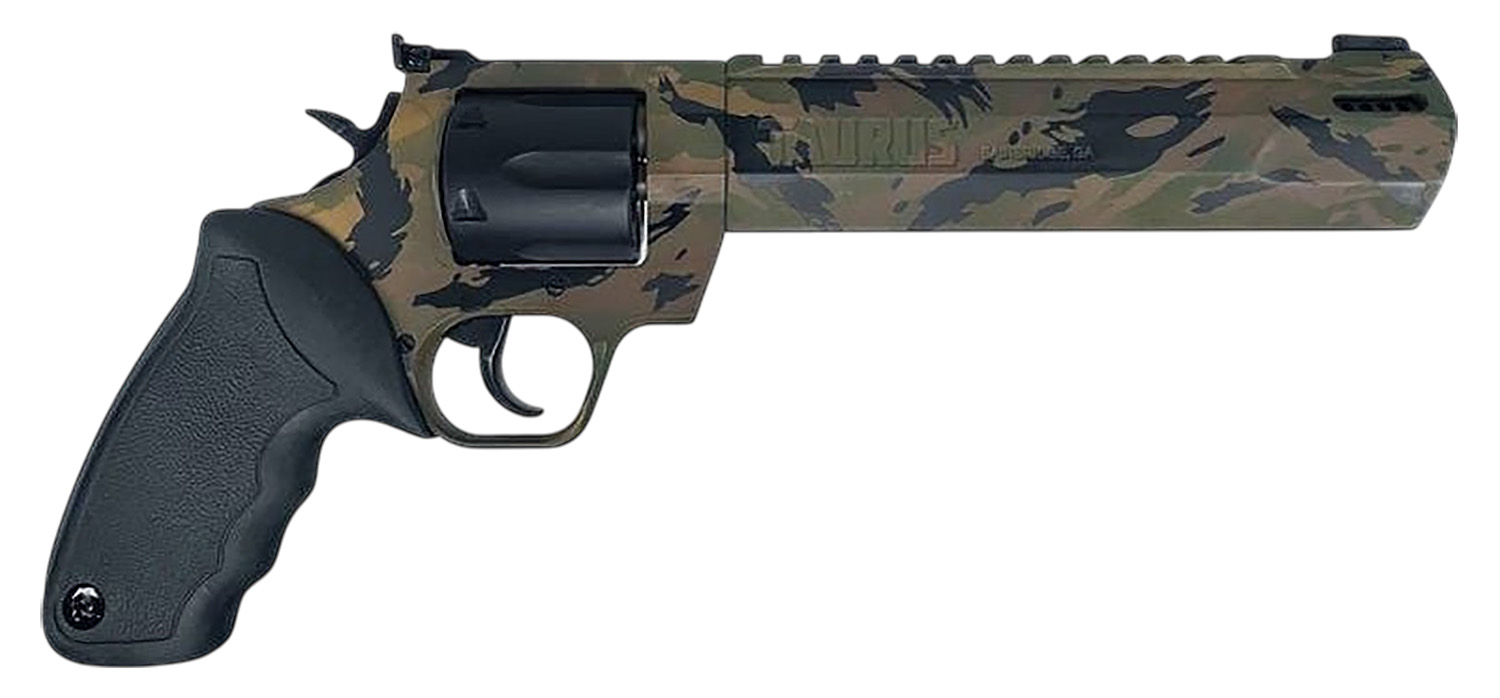 Taurus 2-357081RH-DTSC Raging Hunter Large 357 Mag/38 Special +P 7 Shot 8.37″ Camo Picatinny Rail/Ported Barrel, Matte Black Cylinder, Camo Alloy Steel Frame, Transfer Bar Safety, Exposed Hammer