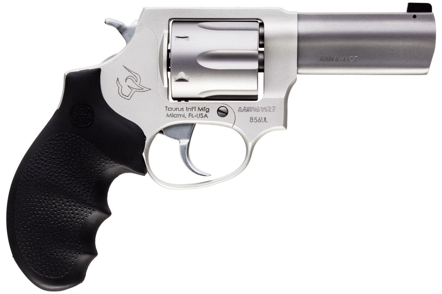 Taurus 2-85639ULNS Defender 856 Ultra-Lite Small 38 Special +P 6 Shot 3″ Matte Stainless Steel Barrel, Cylinder & Frame, Hogue Finger Grooved Grip, Transfer Bar Safety, Exposed Hammer