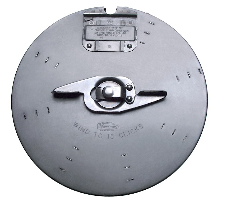 The 100rd drum has a diameter of 8.75″. Will only fit 1927-A1 Thompson models and Modern Thompson guns made in Worcester, MA. *Note will NOT fit Thompson M1 models (Military version of Thompson-if it has a side charging handle then it is an Thompson M1 Model) and Thompson guns made in West Hurley, NY or before 1990. Each drum is shipped with a drum installation device (3rd hand. Each authentic drum is entirely U.S. manufactured to the exact specifications as the originals.